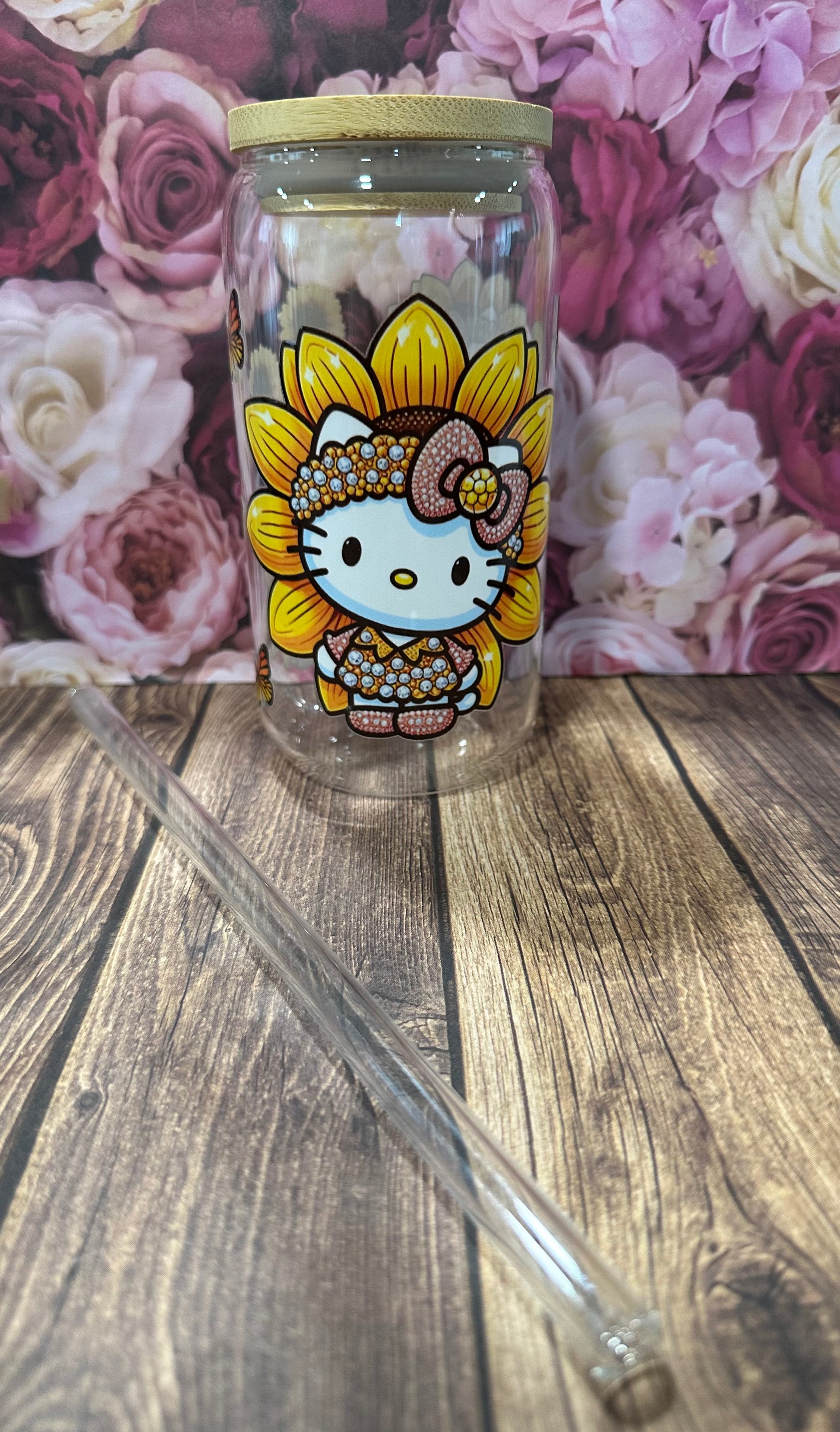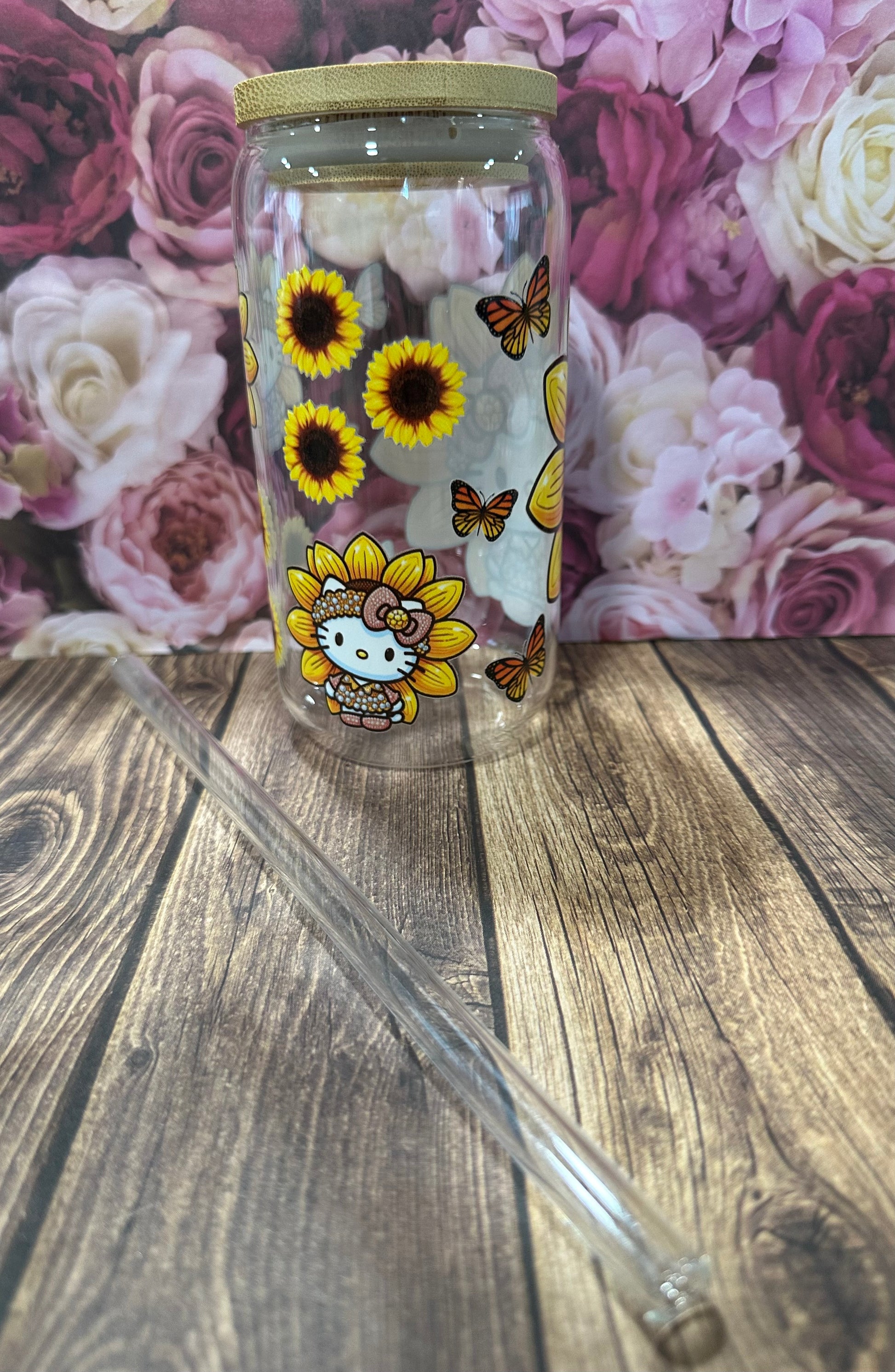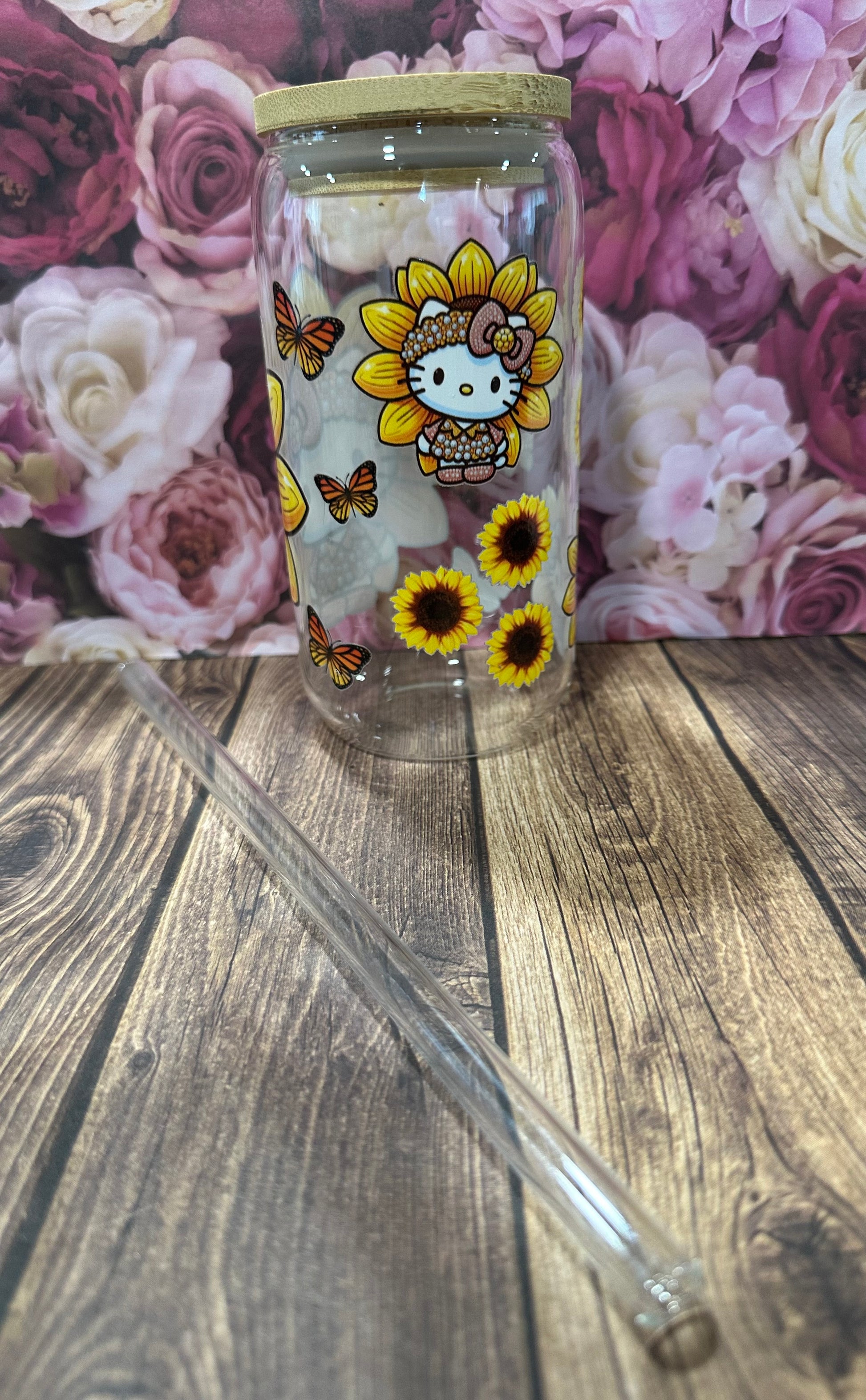 This 16 oz glass Libby comes with a glass straw and has a UV DTF image on it. They are hand wash only.