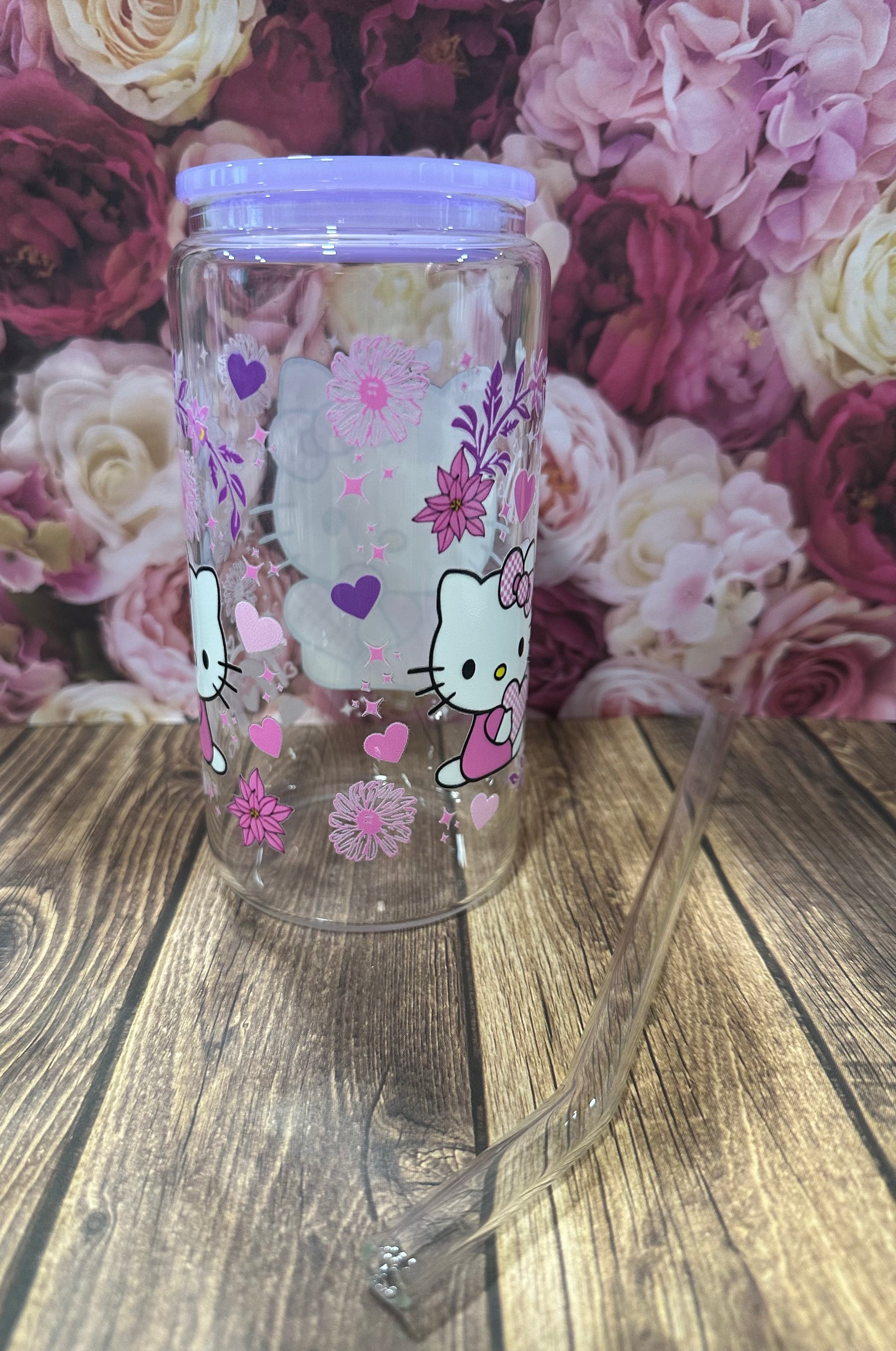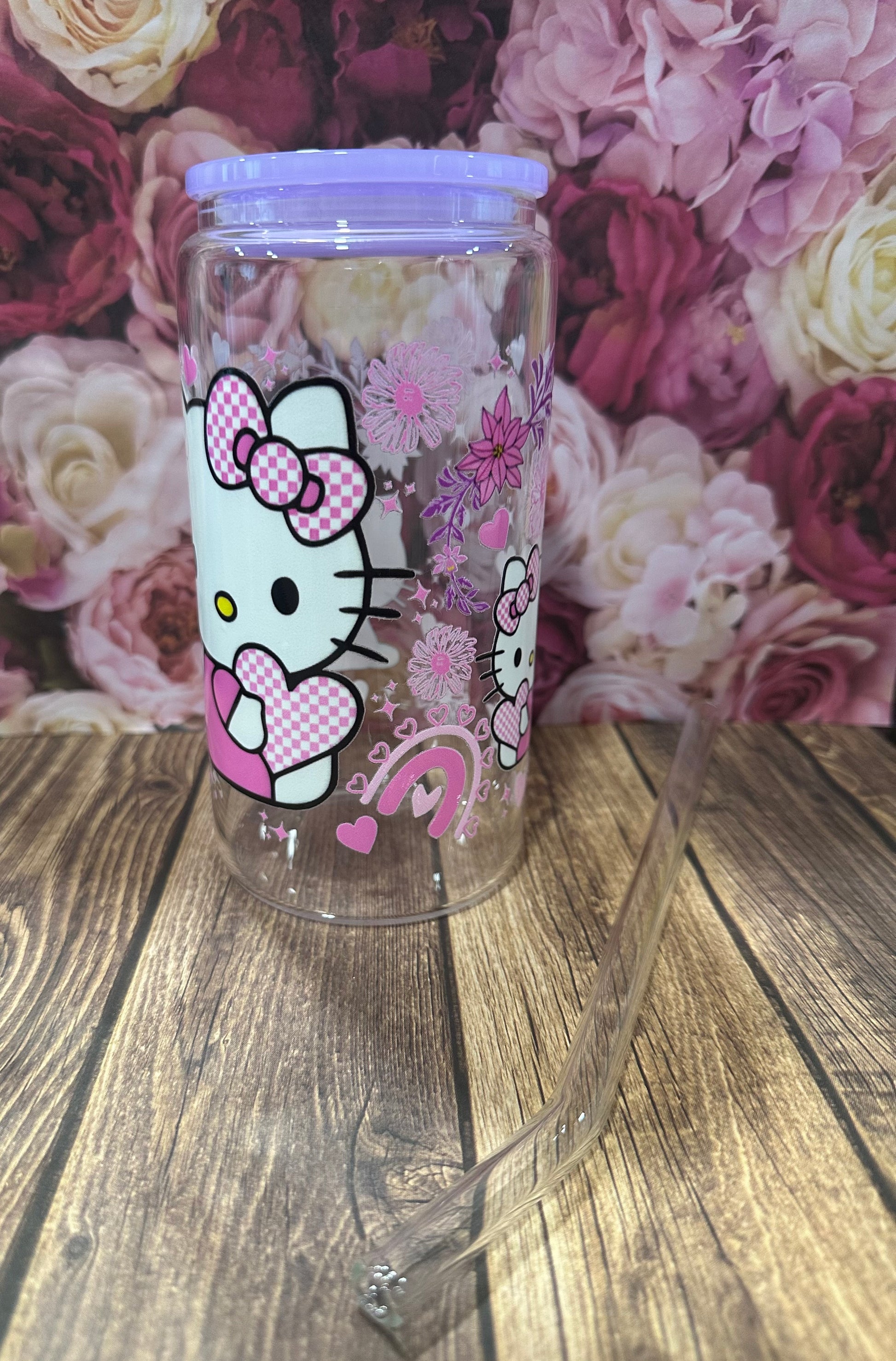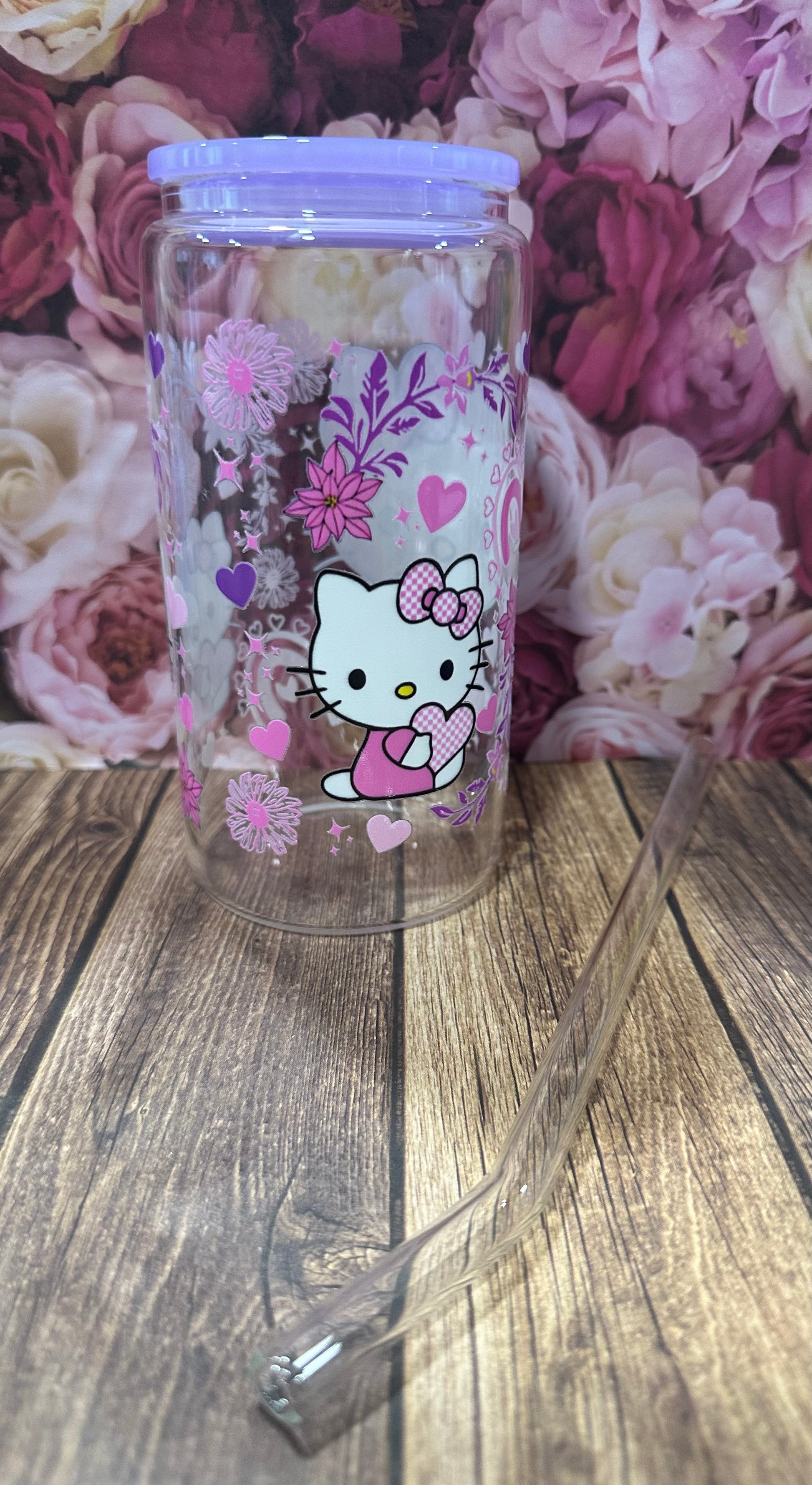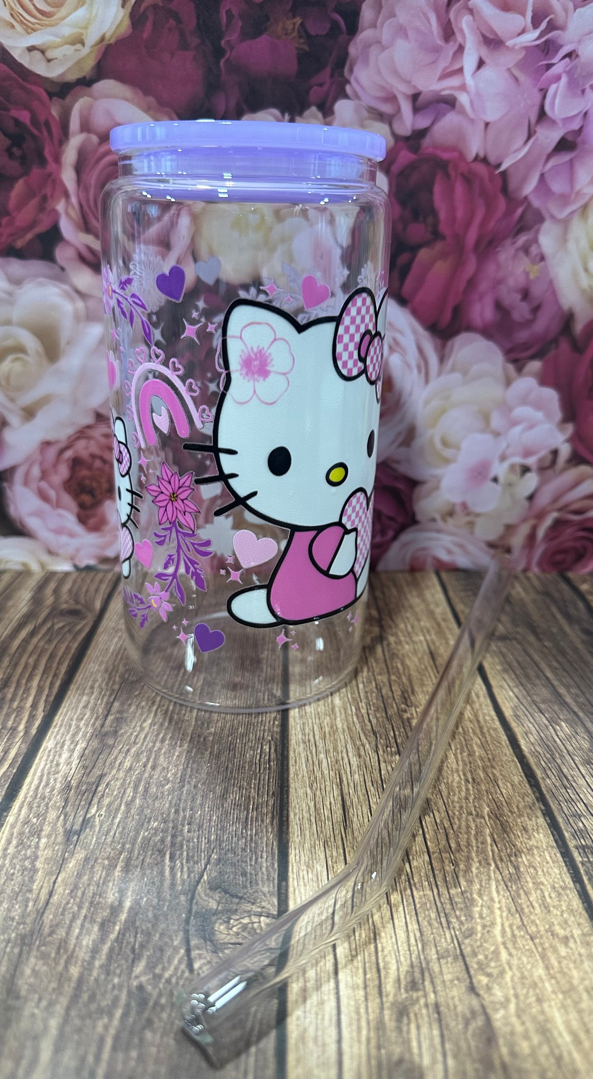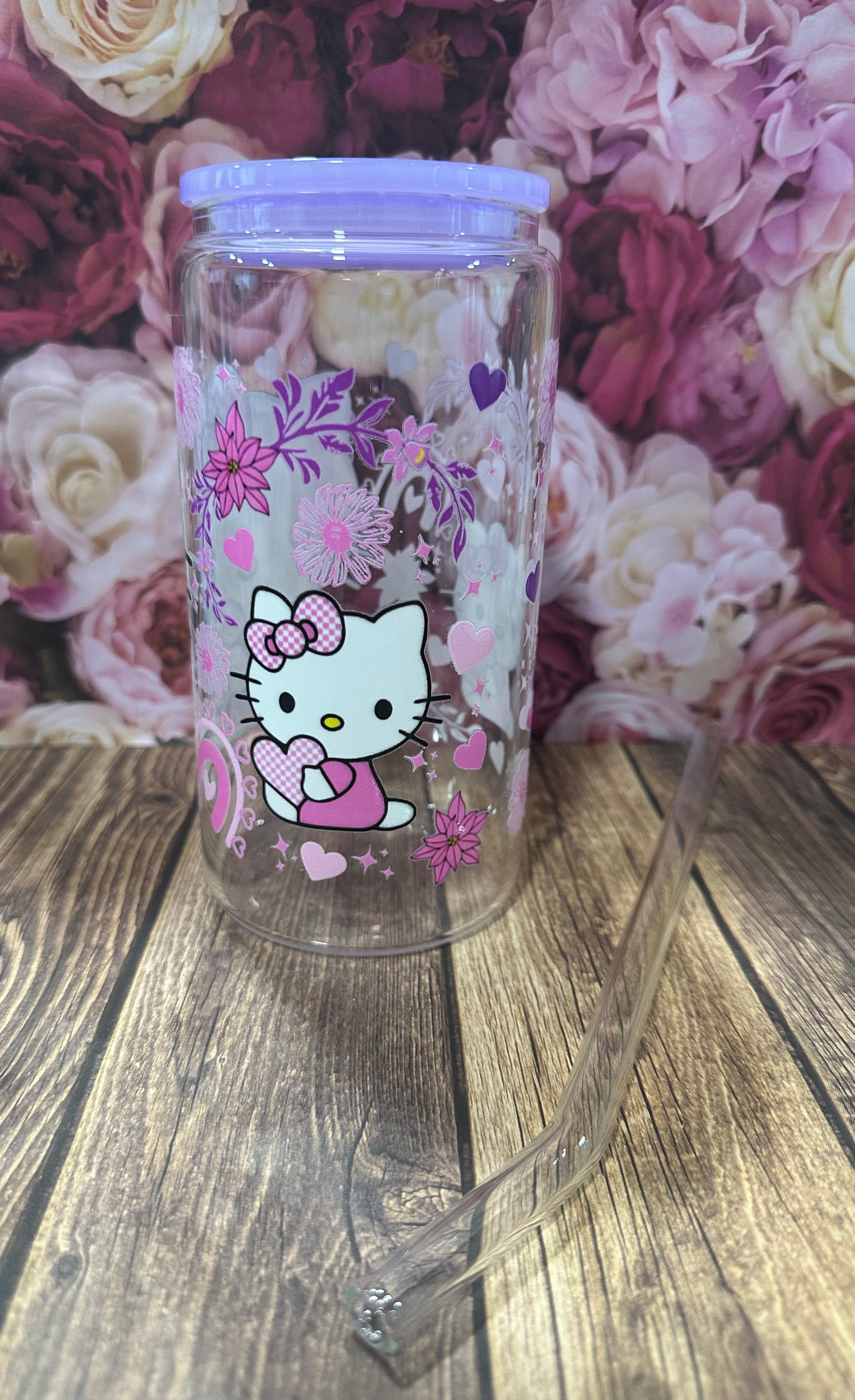 This 16 oz glass Libby comes with a glass straw and has a UV DTF image on it. They are hand wash only.