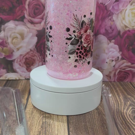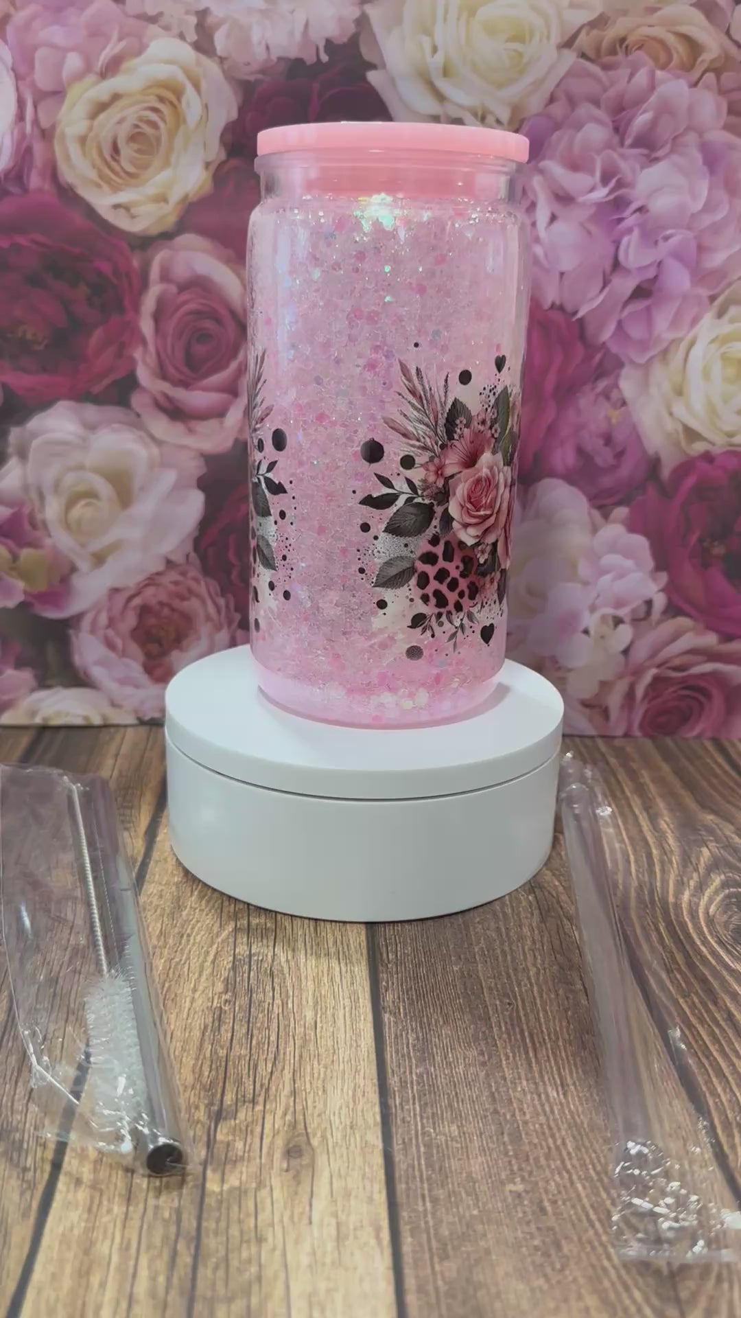 These snow globe tumblers can be filled with a variety of liquids, items and or glitters. They are sealed at the bottom with UV resin. The glitter, drip and powder can settle to the bottom in some. All you need to do is shake them and they will flow again. These are hand wash only and no scrubbing, cool water only and do not soak. Room temperature or cold drinks only inside these tumblers. Hot liquids may cause cracking.
