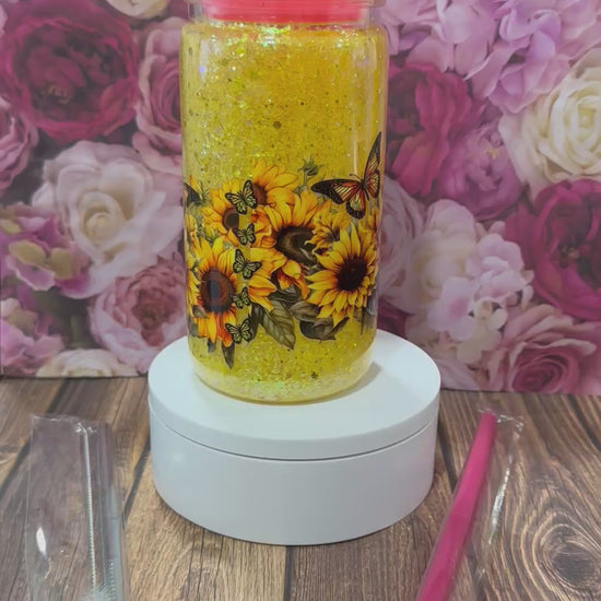 These snow globe tumblers can be filled with a variety of liquids, items and or glitters. They are sealed at the bottom with UV resin. The glitter, drip and powder can settle to the bottom in some. All you need to do is shake them and they will flow again. These are hand wash only and no scrubbing, cool water only and do not soak. Room temperature or cold drinks only inside these tumblers. Hot liquids may cause cracking.
