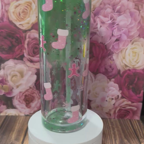These snow globe tumblers can be filled with a variety of liquids, items and or glitters. They are sealed at the bottom with UV resin. The glitter, drip and powder can settle to the bottom in some. All you need to do is shake them and they will flow again. These are hand wash only and no scrubbing, cool water only and do not soak. Room temperature or cold drinks only inside these tumblers. Hot liquids may cause cracking.