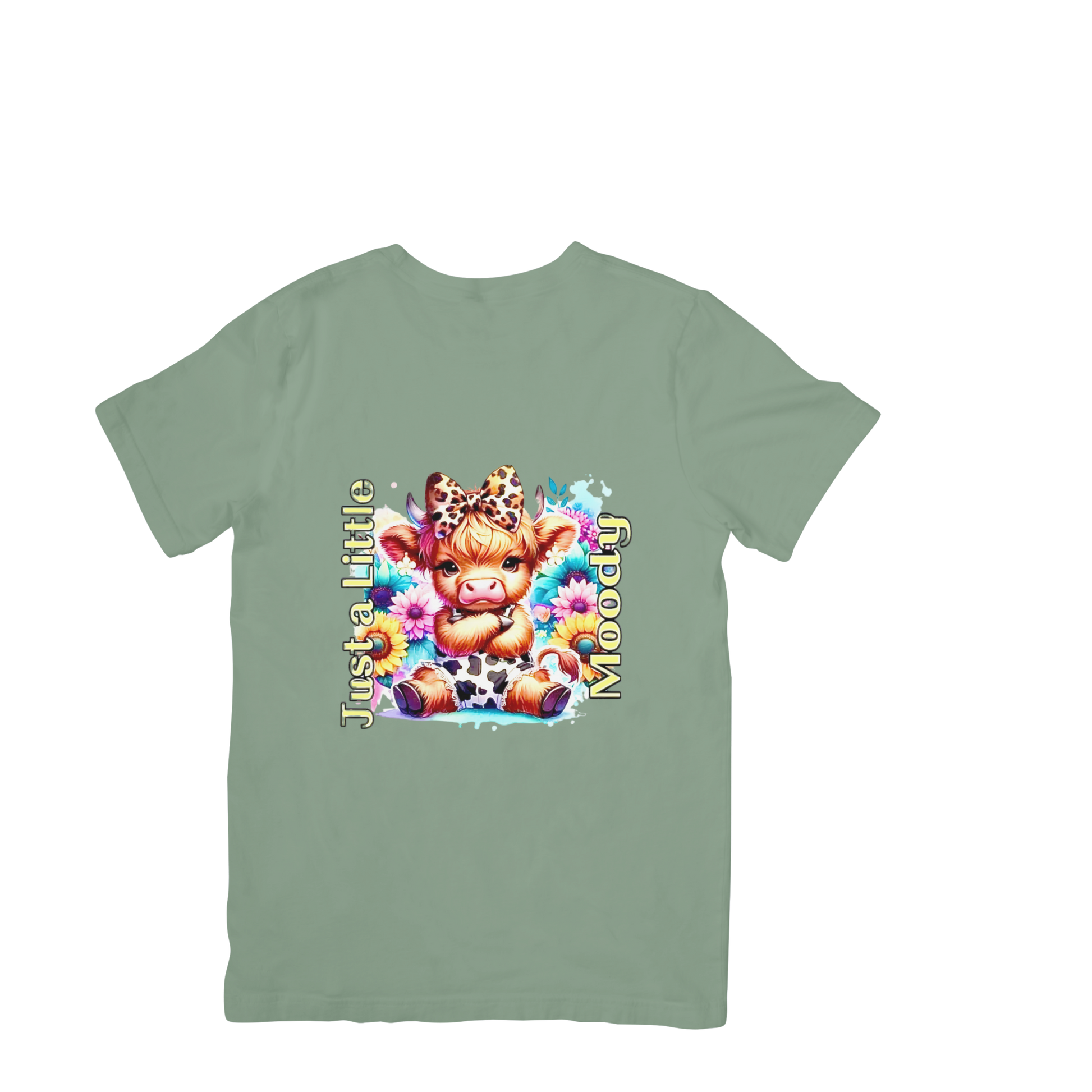 This is a DTF print on a gildan olive green heavy cotton t shirt.
