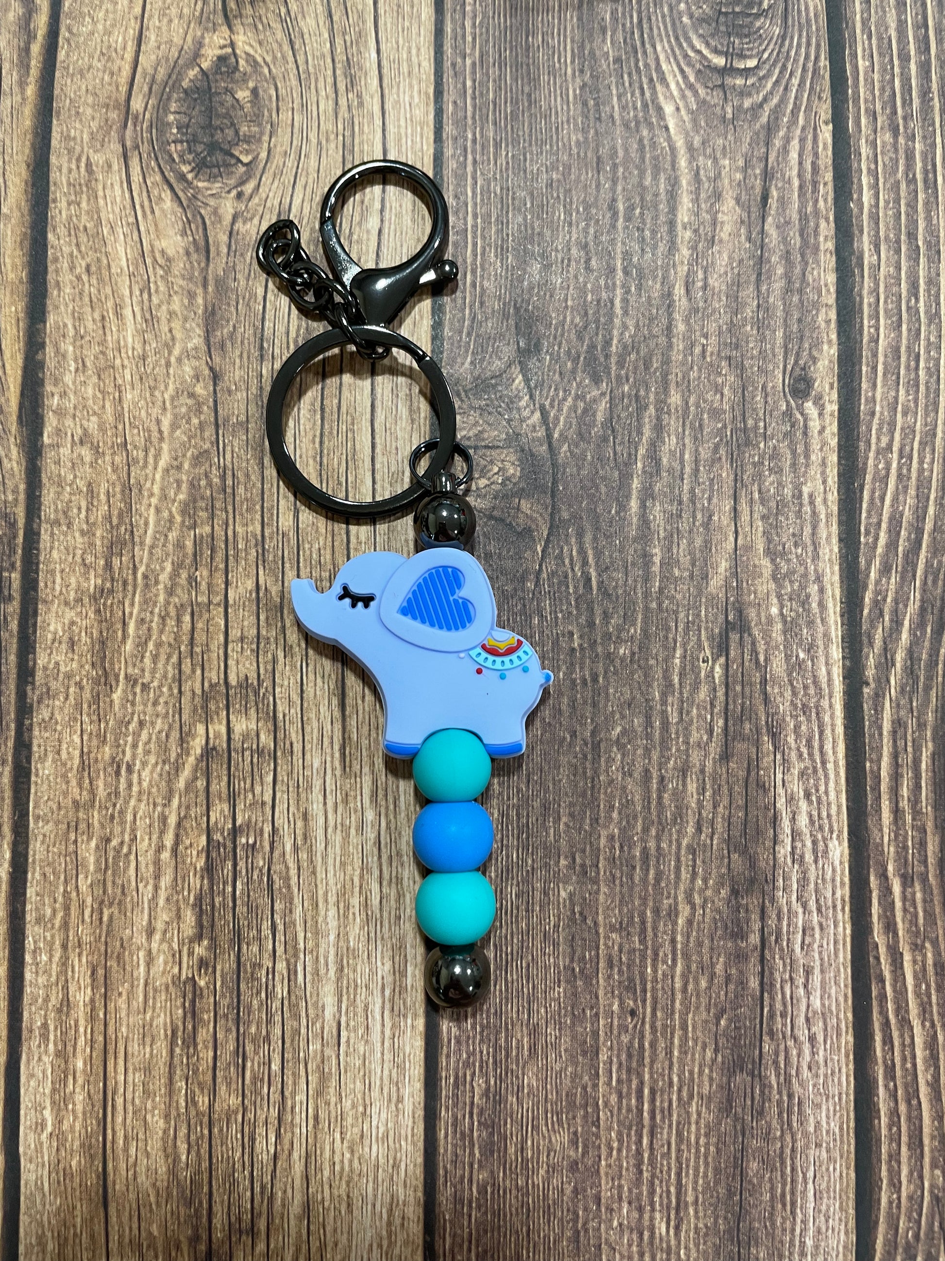 This silicone beaded Keychain comes with 1 focal bead and different color beads. One round keychain/clip.