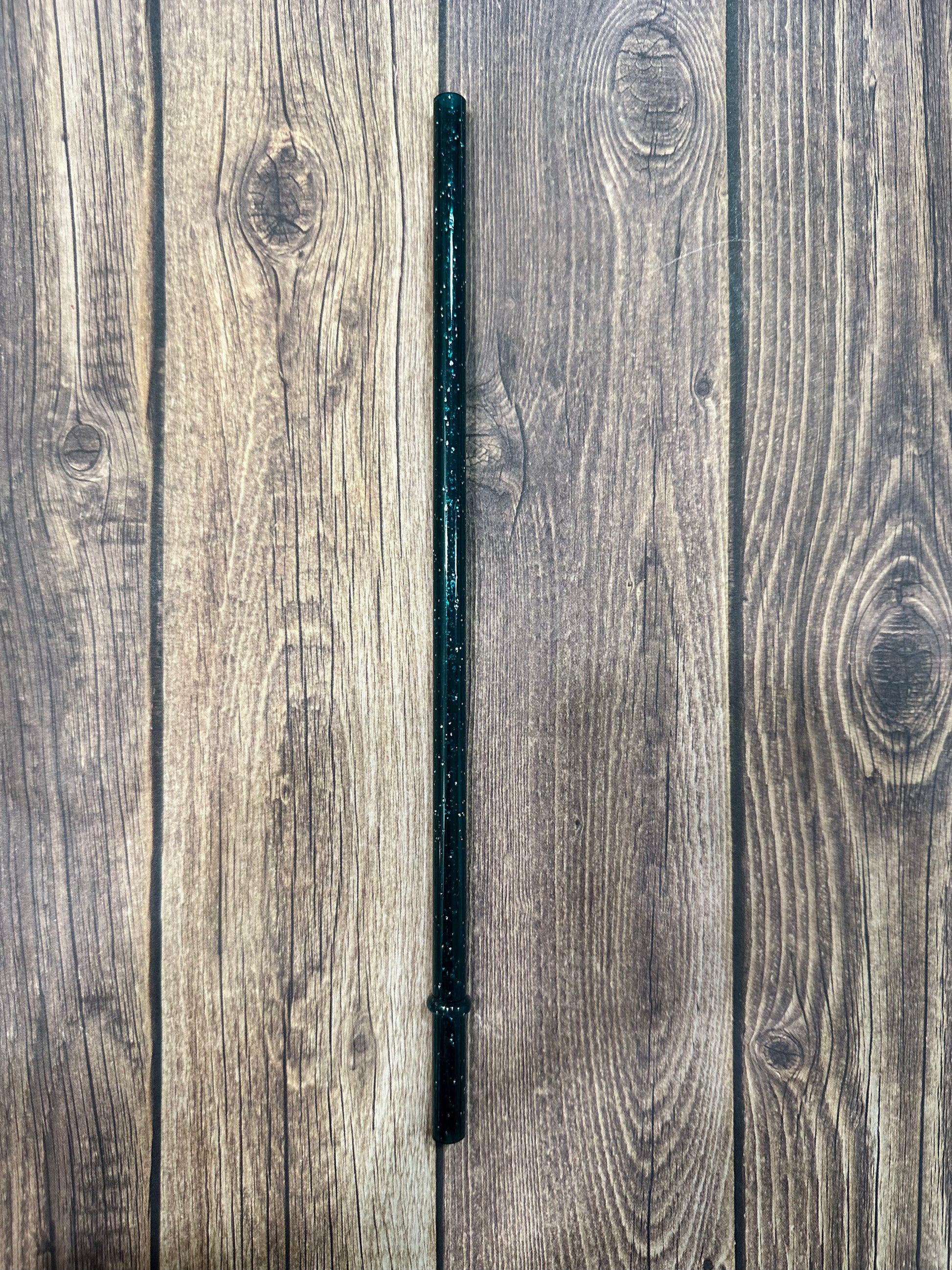 9" Green glitter plastic reusable straw