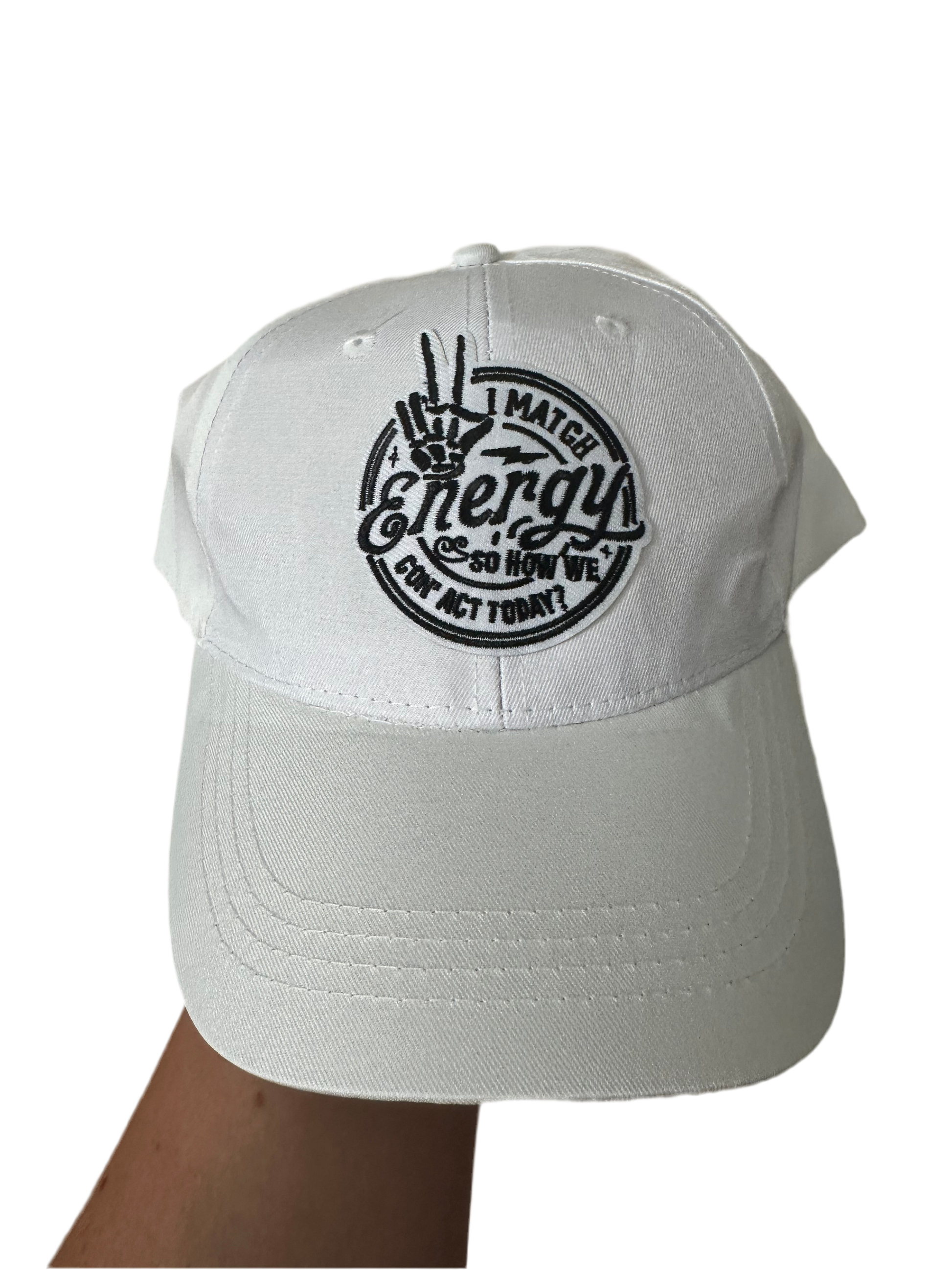 This white hat has a black and white patch.