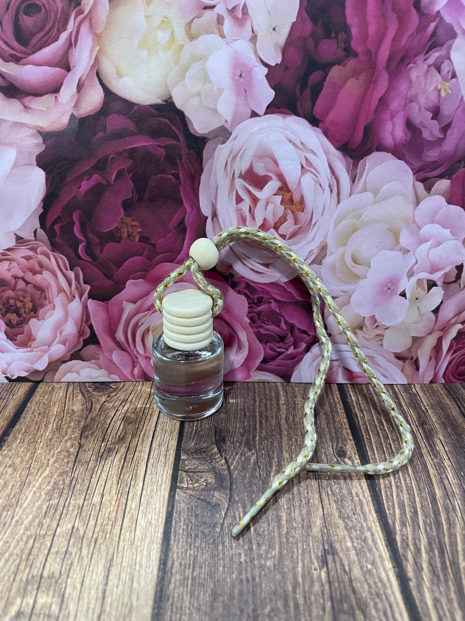 This glass car freshie holds 10 ML of fragrance. You must take the lid off to take the plastic stopper out. Once you take the plastic stopper out put the lid back on. Gently tip the bottle upside down quickly to get some of the fragrance on the lid. When the scent fades away then gently re tip the bottle again to add more fragrance to the lid. This can last you a month or longer depending how often you tip the bottle. Do not let it sit on any surfaces alone because it is oil and can stain. This is not edible.