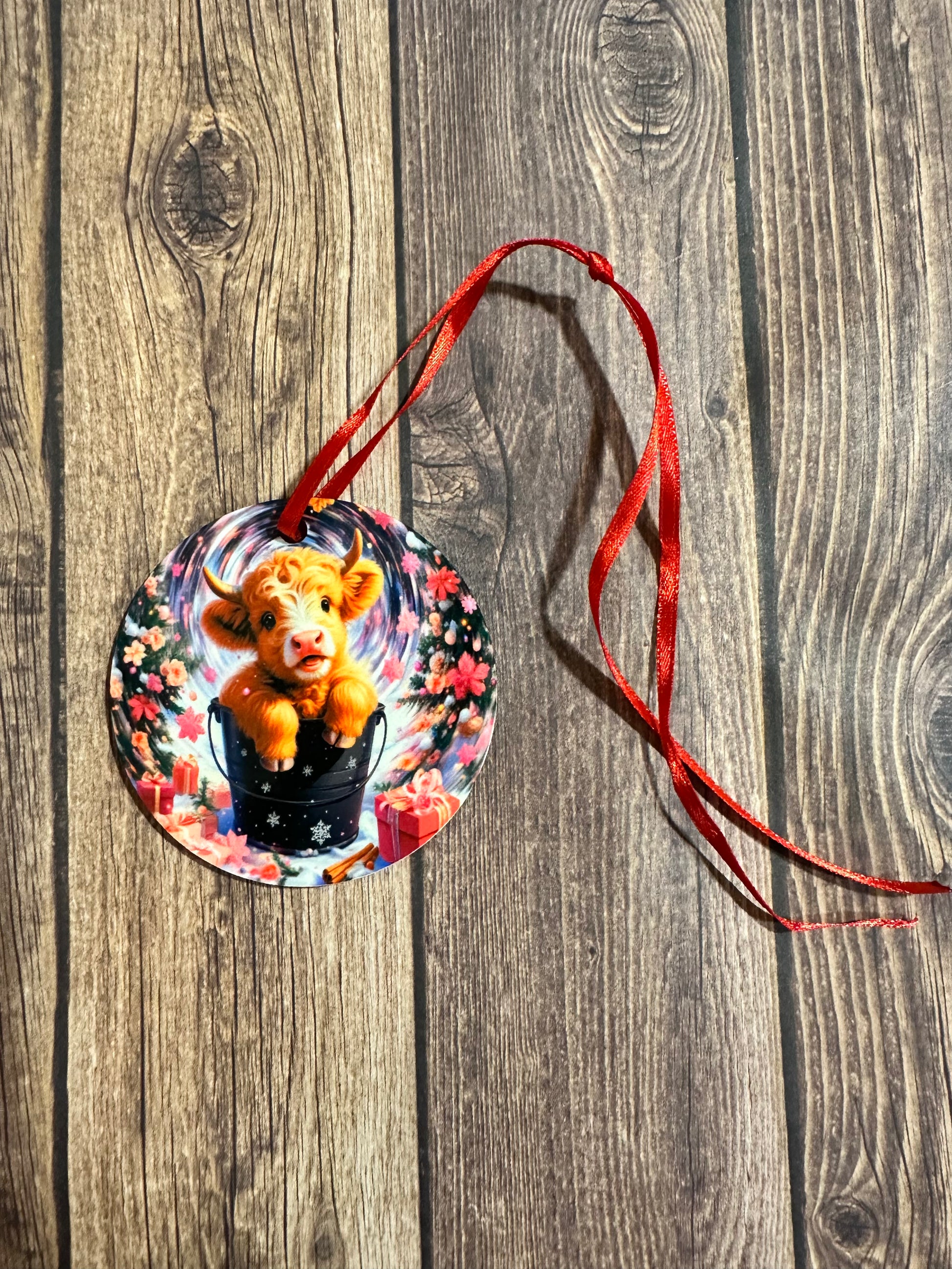 This ornament is 2.75" x 2.75". It has images sublimated on both sides.